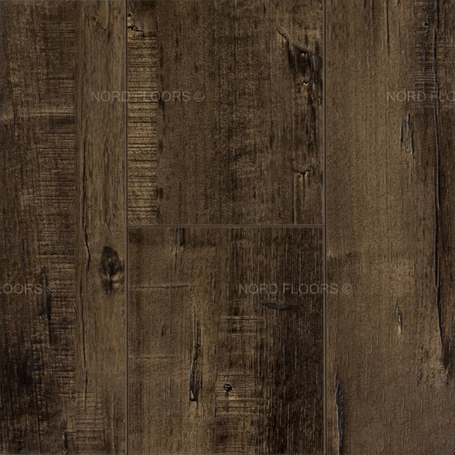 The Toucan Laminate Flooring is a high-quality flooring option that comes in a dark Brown shade with a weathered and distressed appearance. It has a thickness of 12.3mm and is designed with an embossed in register (E.I.R.) texture, which means that the surface texture aligns with the wood grain pattern, giving it a more realistic look and feel.