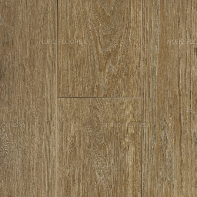The Toucan laminate flooring is 12.3mm thick and features an embossed in register (E.I.R.) texture. It is available in a Beige color with a clean and refined aesthetic. The flooring has a registered design, meaning that the texture aligns perfectly with the wood grain pattern for a realistic look and feel.
